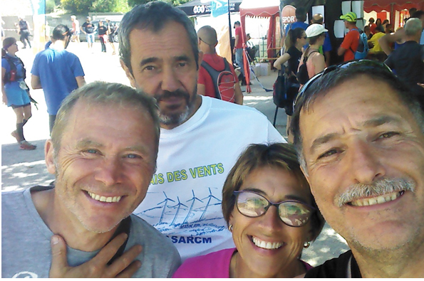 Le 21 mai 2017, Sandrine, Alain, Claude et Jean Marc faisaient partie des 453 participants du trail de Quéribus. La température fraiche du matin au départ a vite laissé place à la chaleur lors de la première difficulté, l’ascension vers le château avec des images magnifiques sur le Canigou encore enneigé puis ce fut la ligne de crête très technique avant la descente sur Padern. Petite traversée du village avant de d’attaquer le ‘’mur’’ à quatre kilomètres de l’arrivée, là, plus question de stratégie mais simplement aller chercher au fond de soi le peu de volonté, de courage et d’énergie qu’il reste (s’il en reste.) le sommet est déjà derrière, la ligne d’arrivée est en vue, encore 1.5 km de descente caillouteuse puis 200 m de montée comme dessert. Voilà, tout le monde est bien rentré heureux d’en avoir terminé en se donnant rdv l’année prochaine…. Penser à commander le pain avant le départ !