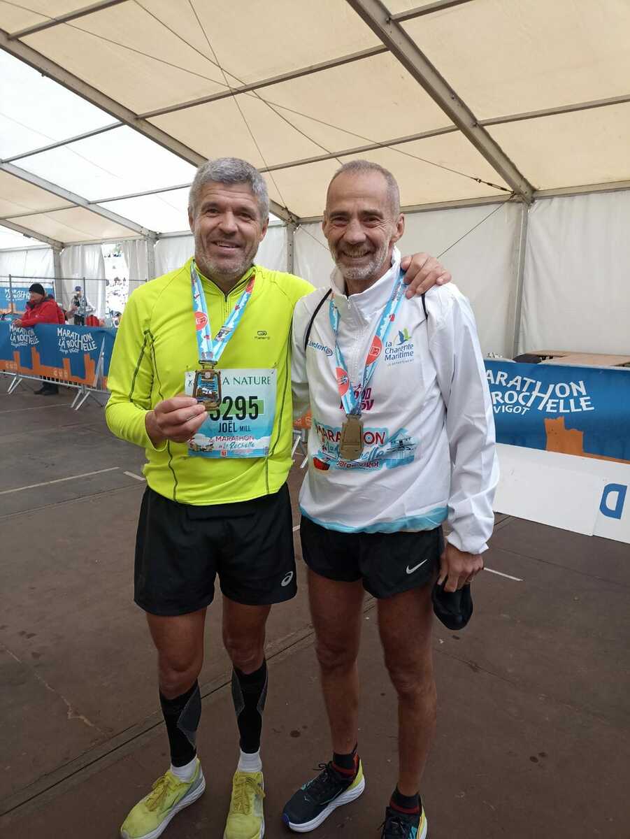 Un grand bravo à Joël et Bruno qui ont fait briller les couleurs du club à La Rochelle en terminant leur Marathon en 4h00 pour Joël Mil et en 3h28 pour Bruno Dessalles. Tout en gardant le sourire malgré le vent, félicitations à vous deux.